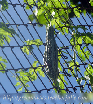 Bitter gourd or ampalaya hanging on our fence. Who would have thought I who has a black thumb would have these at home?
